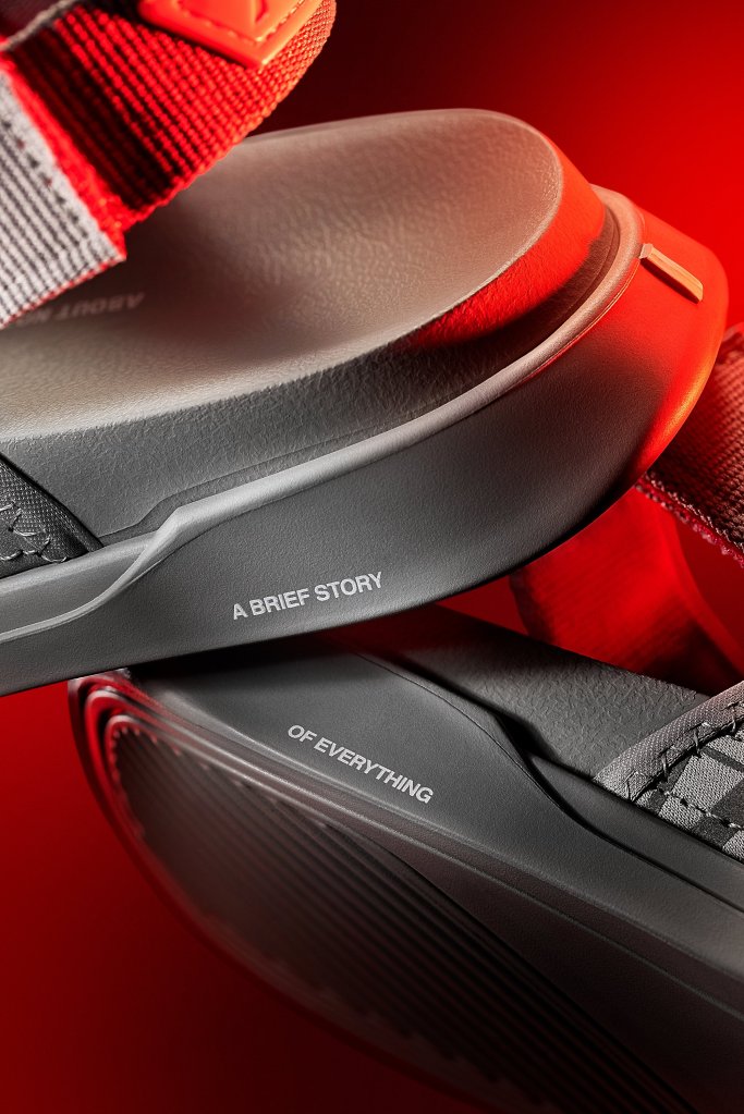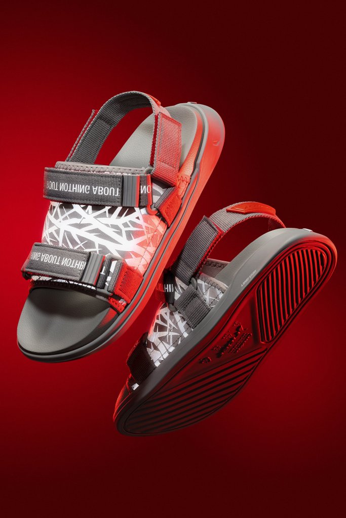 O resultado desse trabalho em equipe é uma papete predominantemente cinza com detalhes vermelhos, e que ganha um painel refletivo na região do médio pé, além do nome da marca companheira nas tiras, também com detalhes que reagem a luz.